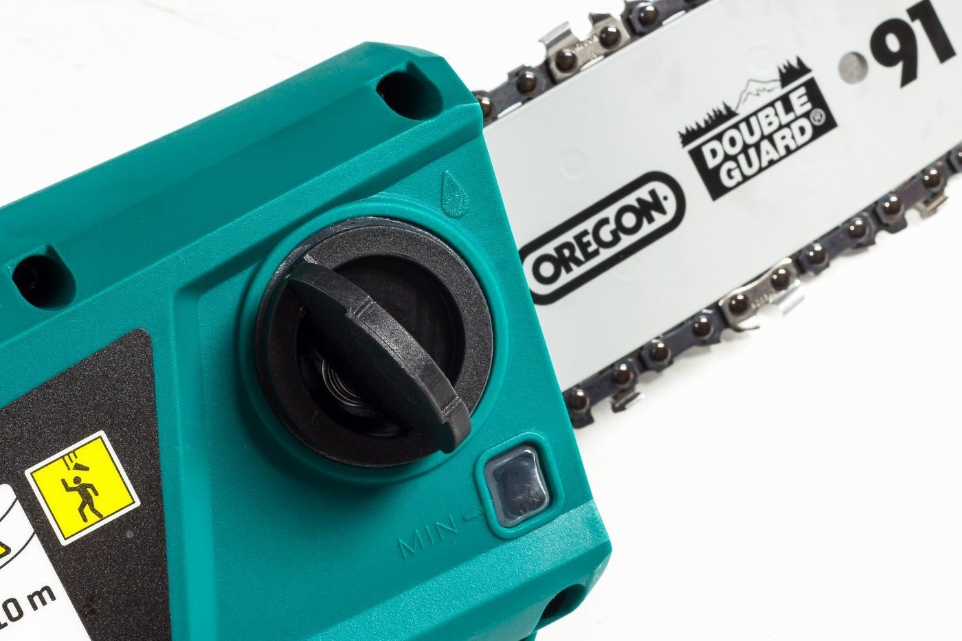 Długość prowadnicy to bardzo ważny aspekt, decydujący o wyborze okrzesywarki. To właśnie ten element roboczy, na którym znajduje się łańcuch - im dłuższa prowadnica, tym większe, bardziej uniwersalne możliwości zastosowania piły. Prezentowany model pilarki został wyposażony w trwałą prowadnicę OREGON o długości 20 cm, dzięki czemu idealnie sprawdzi się w przydomowym ogrodzie czy sadzie.