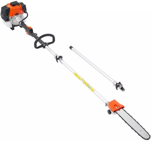 To narzędzie z bardzo długim zasięgiem, do 2,94 m, pozwala na bezpieczne przycinanie wysokich gałęzi bez konieczności używania drabiny. Dzięki silnikowi dwusuwowemu zasilanemu gazem, narzędzie jest w stanie sprostać cięciu nawet bardzo twardych gałęzi. Dodatkowo istnieje możliwość łatwego uzupełniania oleju.
