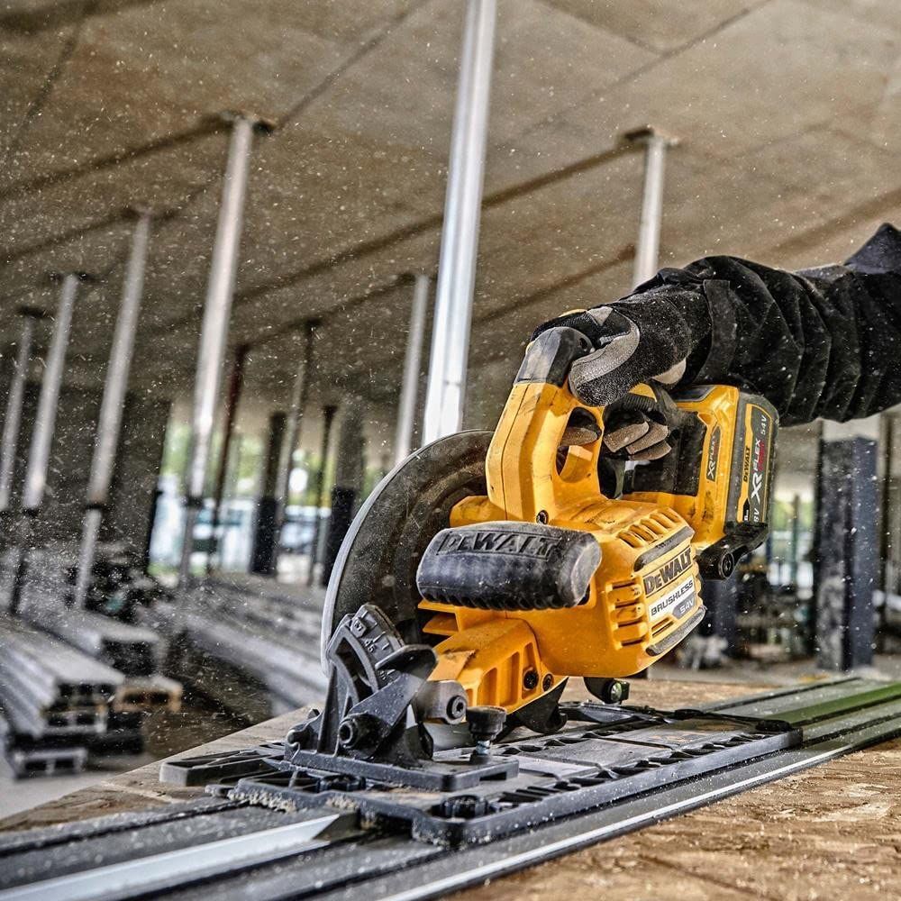54V system FlexVolt zapewnia przewodową wydajność. Silnik bezszczotkowy zapewniający moc, wydłużony czas pracy, niezawodność i trwałość. Uniwersalna pilarka tarczowa do cięcia wzdłużnego i poprzecznego drewna oraz innych materiałów konstrukcyjnych. Płynne ustawianie kąta ukosu do 57°. Skala do precyzyjnego ustawiania głębokości cięcia na 61 mm (57 mm w przypadku użycia z szyną prowadzącą). Optymalne wyważenie zapewnia bezpieczną i komfortową pracę.