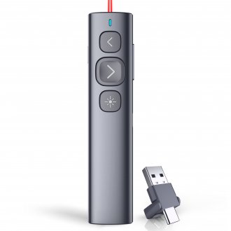 Pilot obsługuje dwa kolory lasera: czerwony i zielony, co znacząco poprawia widoczność w różnych warunkach oświetleniowych. Dzięki temu prezentacje stają się bardziej dynamiczne i łatwiejsze do śledzenia przez odbiorców.