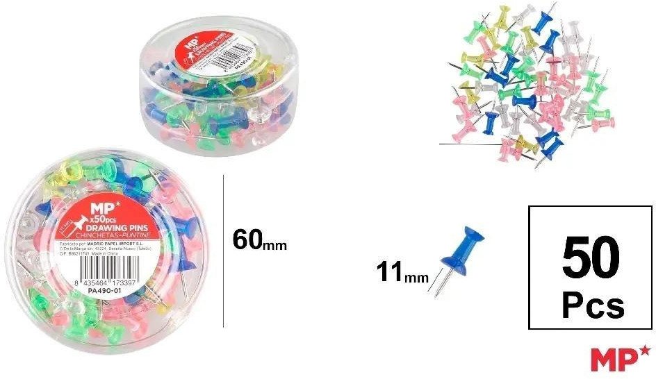 Te metalowe pinezki, produkowane przez renomowaną firmę MP Main Paper, wyróżniają się znakomitą jakością, co zapewnia ich niezawodność oraz długotrwałe użytkowanie. Dzięki solidnej konstrukcji, pinezki są odporne na uszkodzenia i doskonale spełniają swoje zadanie.