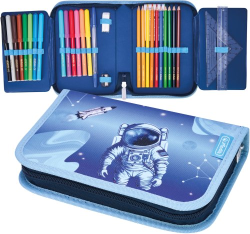 Piórnik rozkładany pojedynczy dwuklapkowy z wyposaż 31el kosmonauta HERLITZ
