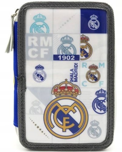 Piórnik szkolny Real Madryt z wyposażeniem dla chłopca rozkładany potrójny
