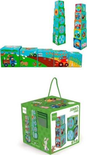 Kolorowa wieża Jumbo Farma do ułożenia z 5 elementów, każdy w różnym rozmiarze. Piramida w wersji XL to wspaniała zabawa, ale też doskonałe narzędzie edukacyjne.