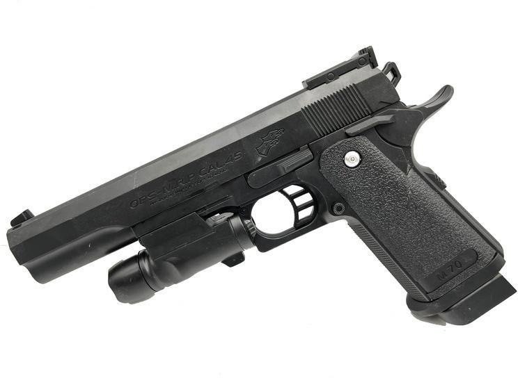 Realistyczna imitacja pistoletu L3936, wykonana z wytrzymałego plastiku, wyposażona w funkcjonalny laser celowniczy oraz wyjmowany magazynek. Model ten strzela standardowymi kulkami plastikowymi 6 mm (BB), co czyni go świetnym wyborem do rekreacyjnej zabawy, treningu celności lub jako element przebrania militarnego.