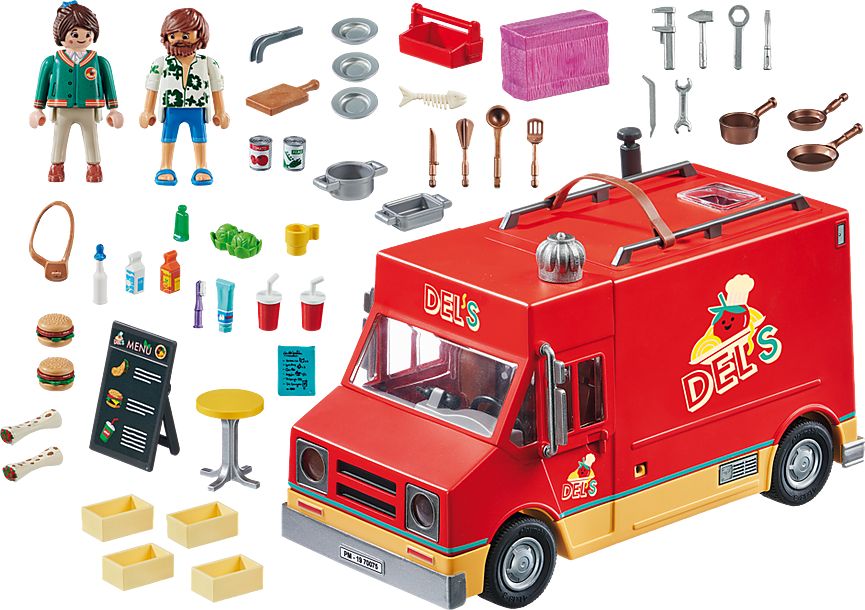 Towarzyszy jej Del ze swoją ciężarówką z jedzeniem i licznymi akcesoriami. Zestaw stanowi wspaniałe uzupełnienie serii Playmobil: Film, ale świetnie nadaje się również do zabawy z pominięciem innych zestawów. | ![]() |