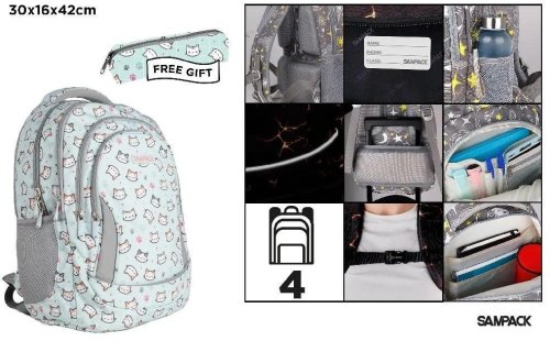 Plecak czterokomorowy 30x16x42cm + piórnik
