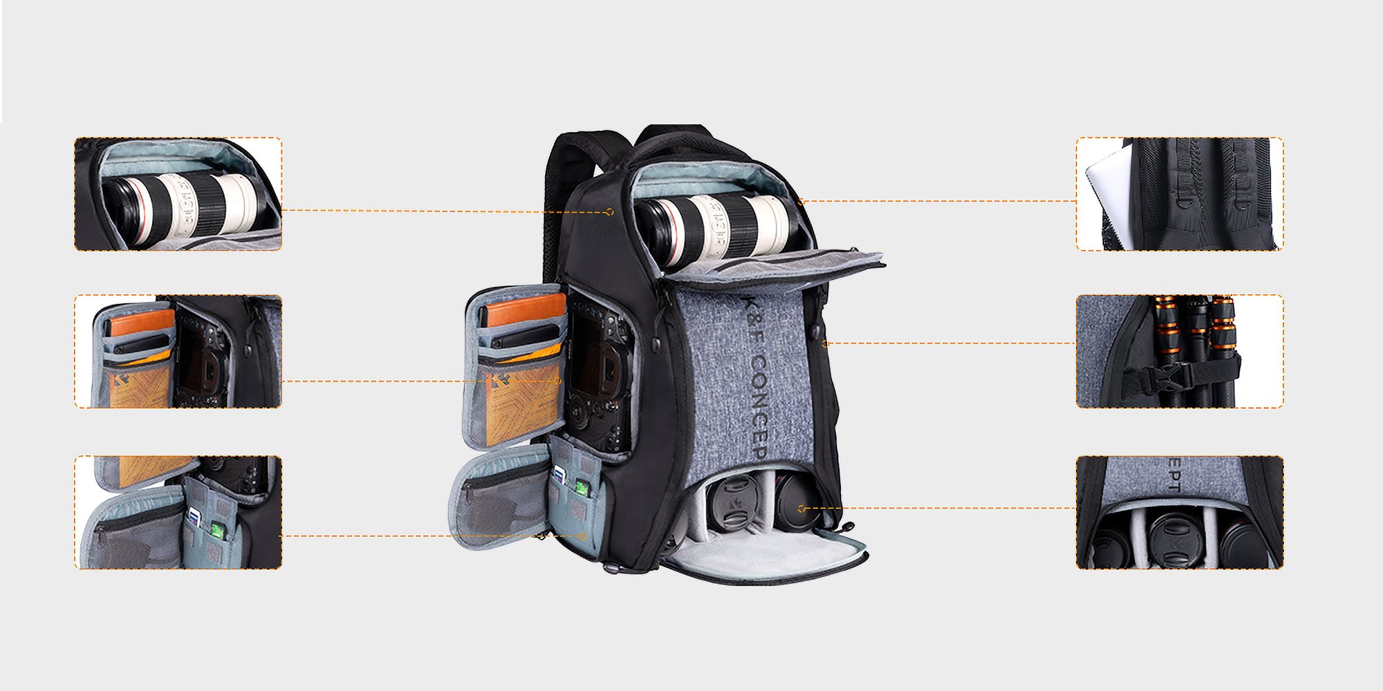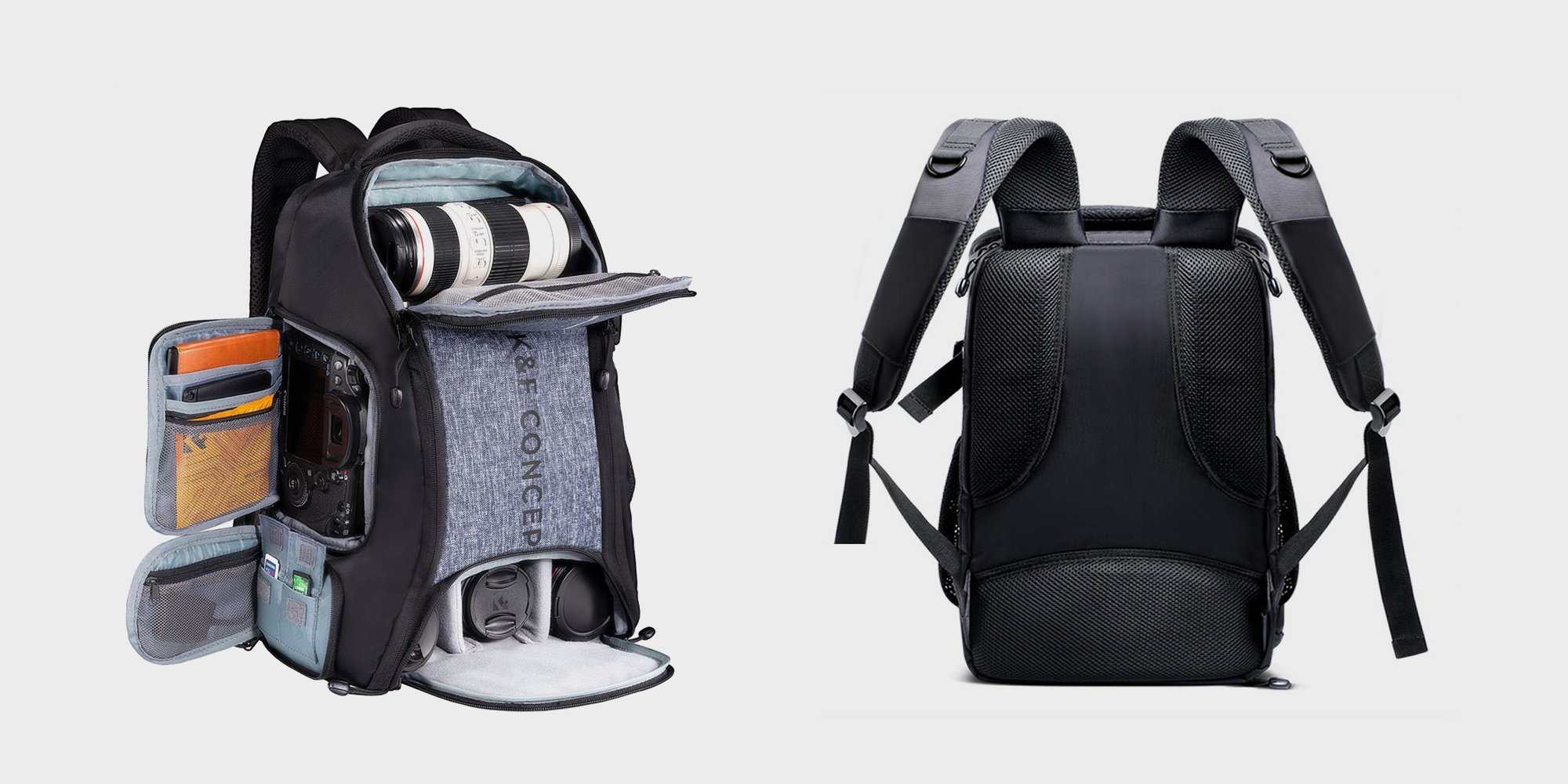 Niezależnie od tego, jak długą sesję foto-video planujesz, K&F Concept zadba o Twój komfort. Gruba wyściółka pleców oraz szerokie, wygodne paski na ramiona sprawiają, że plecak można nosić przez wiele godzin, bez jakiegokolwiek uczucia dyskomfortu. Dodatkowy boczny uchwyt na statyw lub butelkę z wodą, wyposażony w specjalny pasek i klamrę, zapewnia wygodne i bezpieczne przenoszenie dodatkowych akcesoriów.