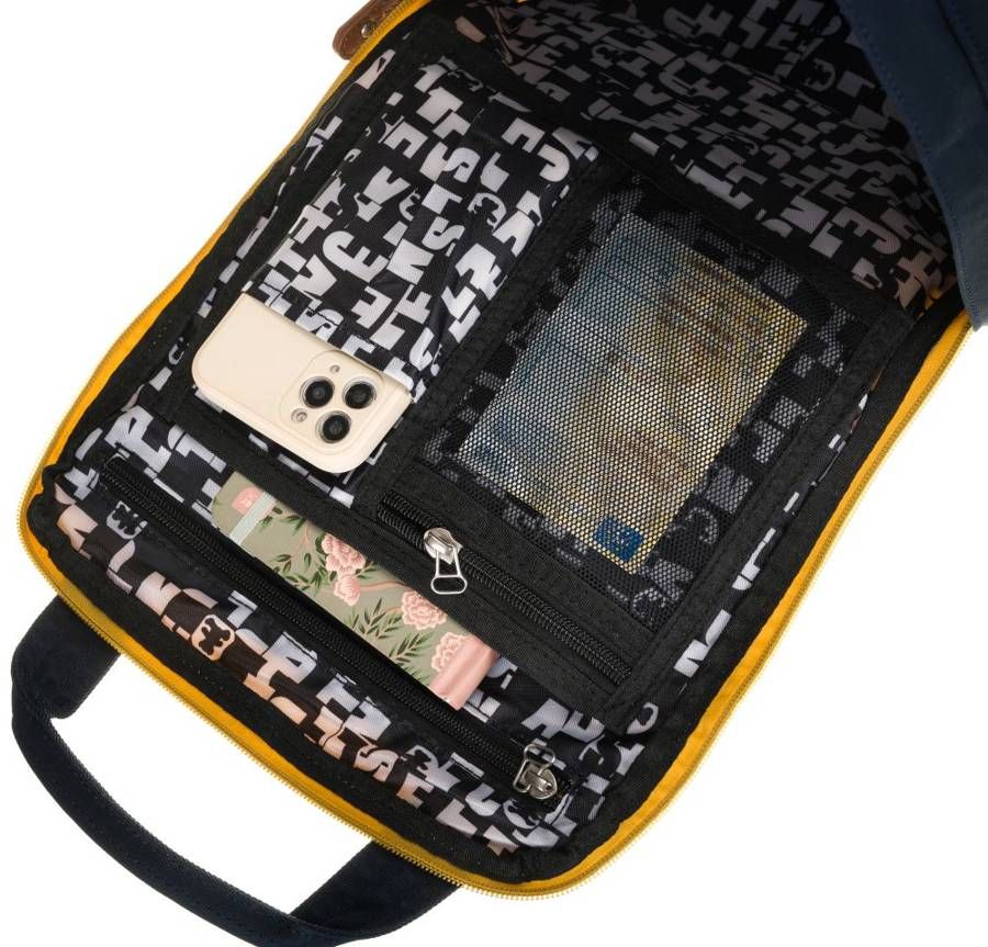 Plecak jednokomorowy zamykany solidnym zamkiem błyskawicznym. Z powodzeniem możesz nosić go do pracy, na uczelnię, ale sprawdzi się również w podróży czy w sytuacjach codziennych. Wewnątrz komory umieszczona została 1 przegroda na urządzenie przenośne. Zmieści ona laptopa z przekątną ekranu do 14".