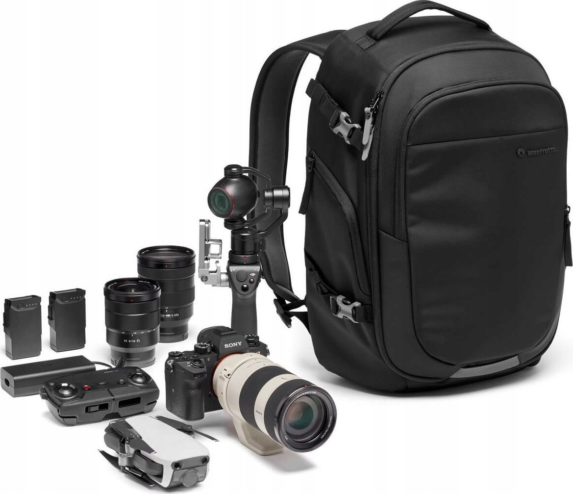 Advanced III Gear przeznaczony jest do przenoszenia i zabezpieczenia lustrzanek i bezlusterkowców. Jego wnętrze pomieści lustrzankę z dołączonym obiektywem 70-200/2.8, a także 4 dodatkowe obiektywy. Równie dobrze może być używany do przenoszenia pełnoklatkowego bezlusterkowca z dołączonym obiektywem 70-200/4 i 2 dodatkowe obiektywy, oraz zestaw DJI Mavic Air 2. Do sprzętu dostaniesz się otwierając przedni panel plecaka.