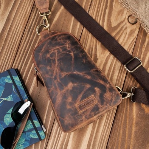 Plecak męski skórzany na jedno ramię na skos mały vintage brązowy Paolo Peruzzi T-118-HBR