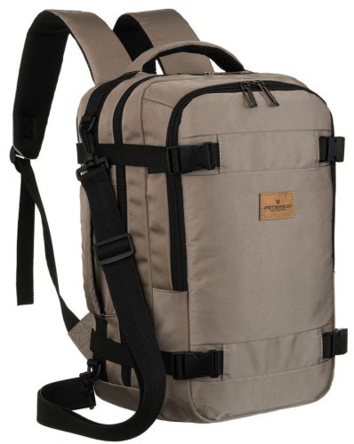 - Ten model plecaka od Peterson® został zaprojektowany z myślą o maksymalnej funkcjonalności – dlatego oprócz klasycznego noszenia na plecach, oferuje również wygodną opcję noszenia jak torby podróżnej. Wszystko dzięki solidnemu, długiemu paskowi z regulacją, który można przypiąć do bocznych uchwytów plecaka.