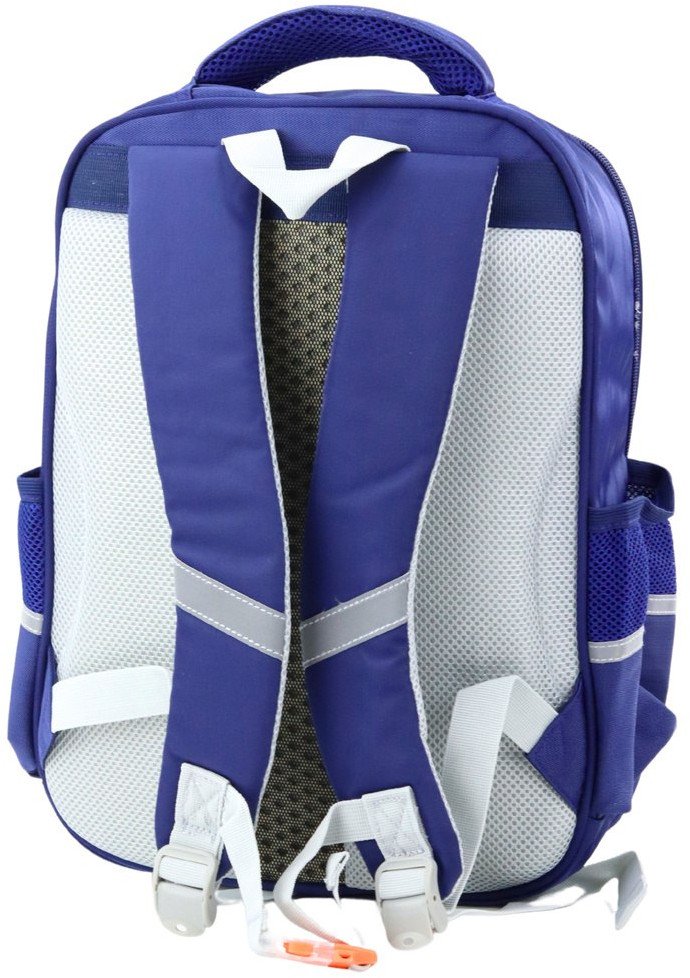 Model wyposażony jest w jedną dużą komorę główną z wewnętrzną przegrodą, która pomaga w utrzymaniu porządku i segregacji książek oraz zeszytów. Na froncie znajdują się dwie mniejsze kieszenie zapinane na zamek, doskonałe na przybory, śniadaniówkę lub drobne akcesoria. Po bokach umieszczono dwie elastyczne kieszenie na bidon lub butelkę z wodą. Dla zwiększenia komfortu noszenia, plecak został wyposażony w regulowany pas piersiowy, który wspomaga równomierne rozłożenie ciężaru i zapewnia stabilność podczas ruchu.