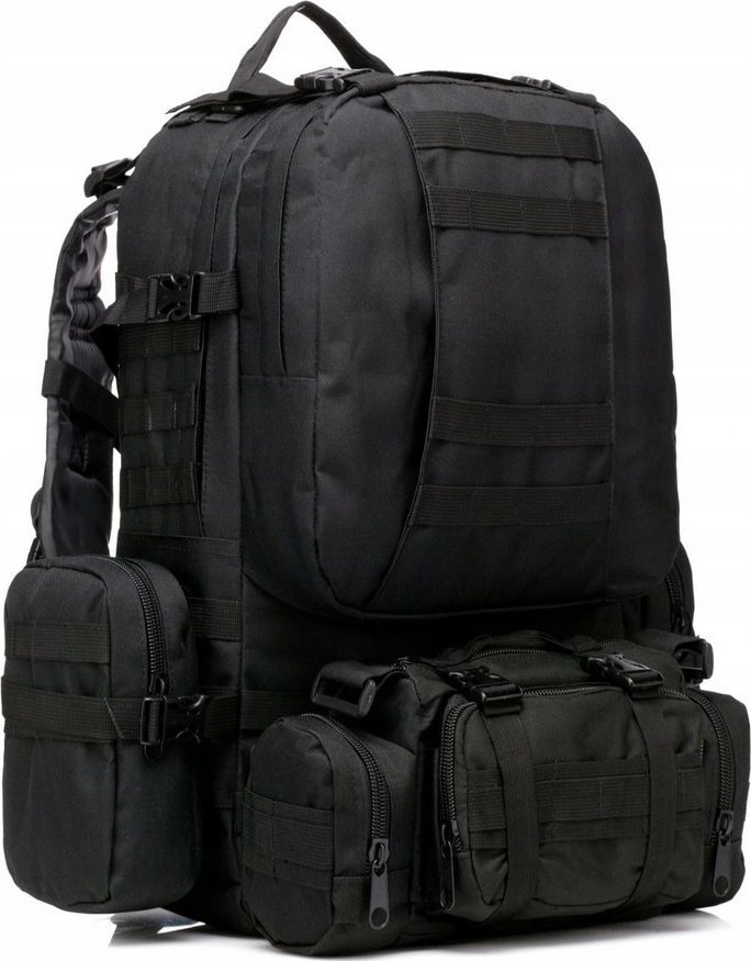 Plecak posiada odczepianą nerkę, która jest zamontowana w systemie molle, a także dwie boczne odczepiane sakwy.