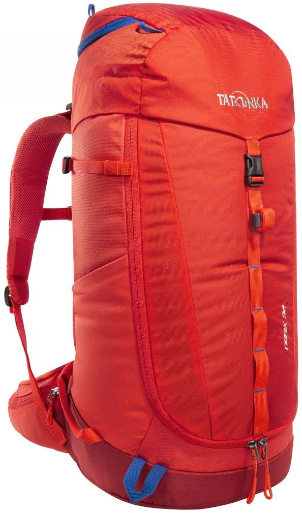 Norix 32 ma duży, praktyczny dostęp do przedniej komory. Jest również wyposażony w elastyczne kieszenie boczne, komorę w klapie oraz materiałowe pętelki z przodu i na klapie. Mocowanie karabińczykami na obu szelkach jest niezwykle użyteczną funkcją na trasach via ferrata. Jeśli przejazdy mają być pokonywane bez asekuracji, karabinki zestawu via ferrata są starannie uporządkowane.