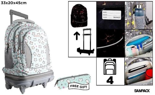 Plecak ze stelażem i kółkami 4 komory + piórnik