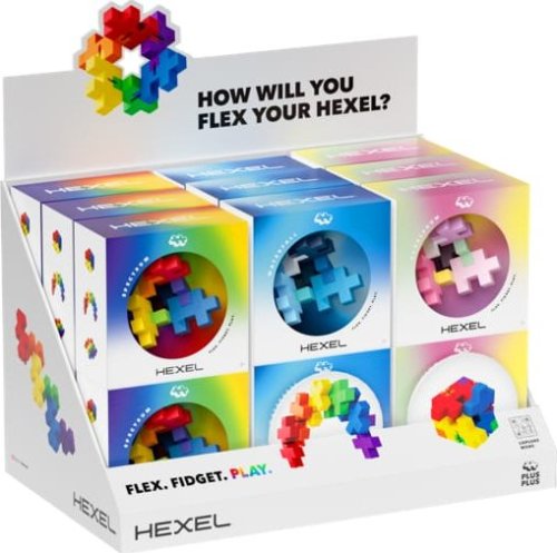 HEXEL to nowoczesna zabawka typu fidget, stworzona przez firmę Plus-Plus, która łączy w sobie elementy zabawy oraz rozwijania kreatywności. Składająca się z sześciu połączonych elementów Plus-Plus BIG, trzymanych razem elastycznym sznurkiem, HEXEL stanowi doskonałe narzędzie do stymulacji sensorycznej. Dzięki bogatej palecie kolorów oraz możliwości budowania różnorodnych struktur, ta zabawka przyciąga uwagę zarówno dzieci, jak i dorosłych.