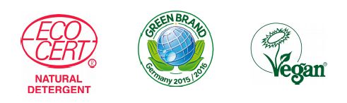Informacje dodatkowe: Certyfikowany produkt ekologiczny (EcoCert). Ulega biodegradacji. Nie zawiera technologii genetycznych, składników pochodzenia petrochemicznego, fosforanów, chlorowych wybielaczy, wybielaczy optycznych, syntetycznych barwników, konserwantów czy substancji zapachowych. Produkt wegański.
