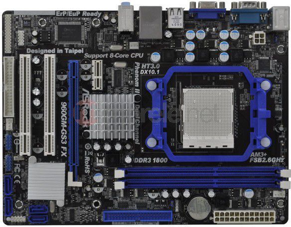 Płyta główna m-ATX oparta na chipsecie AMD 760G/SB710 wyposażona w gniazdo procesora Socket AM3/AM3+. Obsługuje do 8 GB dwukanałowej pamięci DDR3. Posiada zintegrowaną 8-kanałową kartę dźwiękową, giga bitową kartę sieciową oraz kartę graficzną.