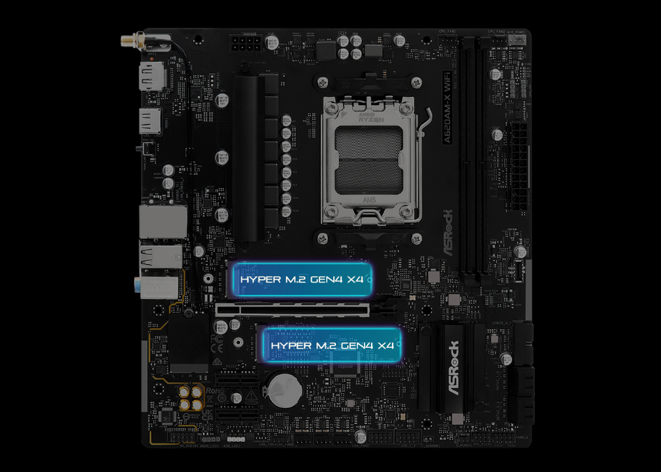 Wsparcie dla dysków PCI Express 4.0 M.2 SSD, które mogą pracować nawet dwukrotnie szybciej w porównaniu do poprzedniej, 3-ciej generacji, zapewniając tym samym błyskawiczny transfer danych.
