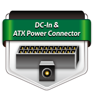 Ta płyta główna obsługuje zarówno standardowe zasilacze ATX jak i zasilacze prądu stałego DC. Wejście DC-In może zastąpić tradycyjne zasilacze (jeśli priorytetem jest niewielki rozmiar), a dodatkowe złącze 24-pin ATX pozwala zastosować standardowy zasilacz ATX w przypadku bardziej rozbudowanych konfiguracji!