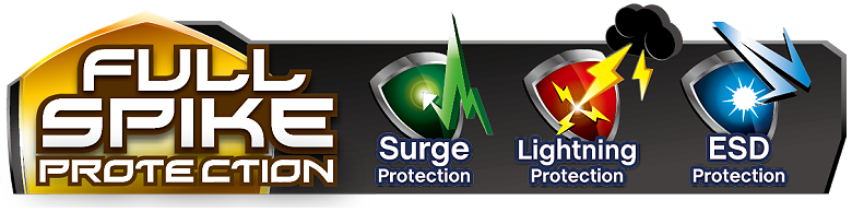 Niektóre delikatne elementy cyfrowe na płycie głównej są wrażliwe na przepięcia, a wyższe natężenie może spowodować natychmiastową usterkę twojego systemu. ASRock Full Spike Protection zawiera różne technologie chroniące elementy płyty głównej przed uszkodzeniem przez te niespodziewane skoki napięcia.