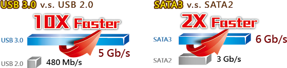Dwa porty USB 3.0 5 Gb/s oraz 2 porty SATA3 6Gb/s dają możliwość wykorzystania wszystkich twoich peryferiów z wysoką prędkością transferu danych.