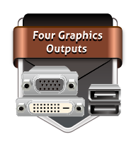 Nigdy za mało wyjść graficznych! W razie gdybyś musiał podłączyć naraz cztery różne rodzaje monitorów, ta płyta główna wspiera wszystkie cztery rodzaje złączy graficznych: D-Sub, DVI-D, HDMI i DisplayPort.