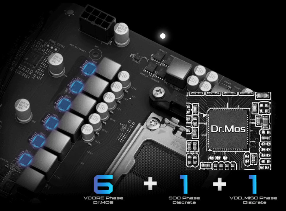 Niezawodne komponenty gwarantują bezproblemowy przesył mocy do procesora. Co więcej, oferują niedoścignione możliwości overclockingu oraz najwyższe osiągi przy najniższych temperaturach dla profesjonalnych graczy. Dr.MOS to zintegrowany stopień mocy zoptymalizowany do zastosowań z synchronicznym obniżaniem napięcia, zapewniający większy prąd i lepszą sprawność cieplną niż tradycyjne tranzystory MOSFET, co gwarantuje zwiększoną stabilność.