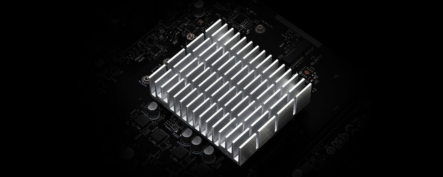 Procesor jest przykryty specjalnie zaprojektowanym radiatorem, który umożliwia zaawansowane odprowadzanie ciepła. Wykorzystując wyjątkowo cichą konstrukcję bez wentylatora, ta płyta główna ASRock zapewnia najcichsze działanie.