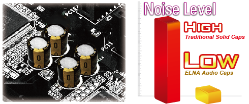 Kto powiedział, że wysokiej jakości dźwięk jest dostępny tylko na płytach głównych z najwyższej półki? ASRock umieścił kondensatory audio marki ELNA na standardowych i najtańszych płytach! W porównaniu z tradycyjnymi kondensatorami, prąd upływu w przypadku produktów firmy ELNA wynosi zaledwie 3uA. To kluczowa sprawa przy eliminacji poziomu szumów i dawaniu satysfakcji nawet najbardziej wybrednym audiofilom.