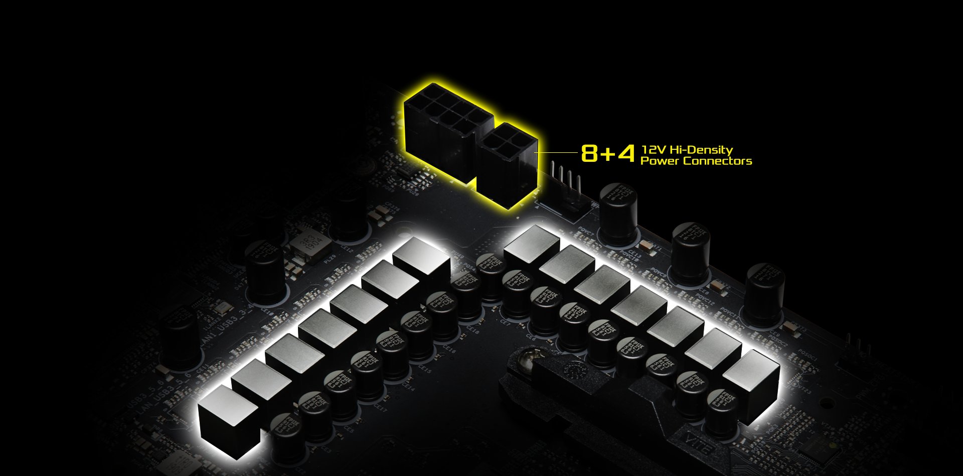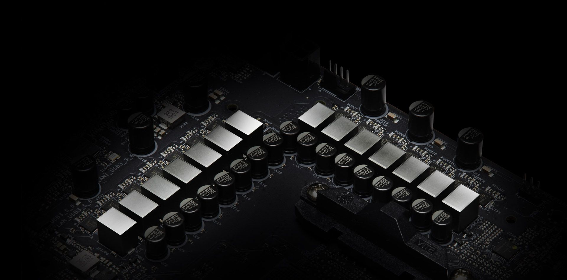 Kombinacja kondensatorów 820uF i 100uF. Łącznie kondensatory te zapewniają jaśniejszą, wydajniejszą i bardziej responsywną moc procesora Vcore, a overclockerzy mogą osiągnąć wyższe wyniki.