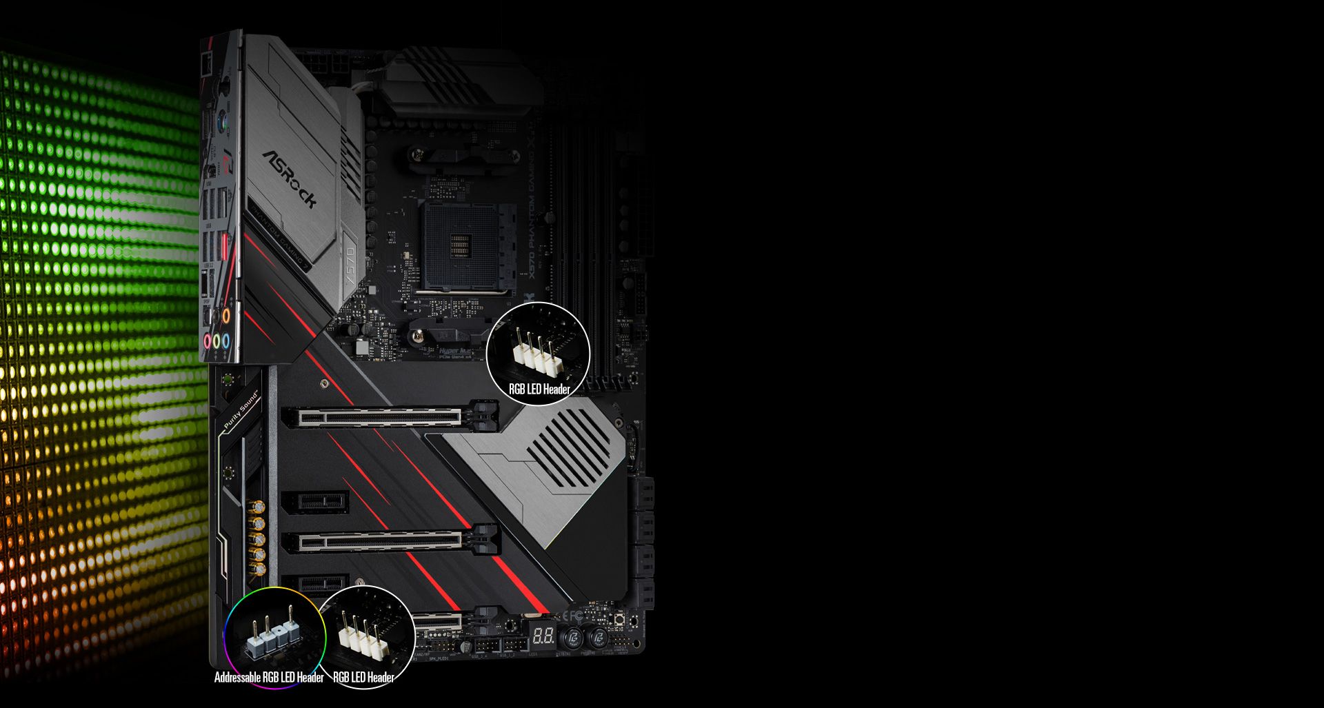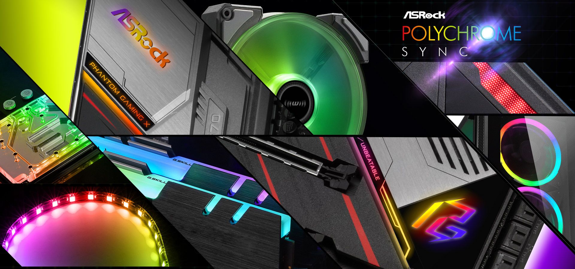 Płyty główne ASRock zapewniają oszałamiającą wydajność i doskonałą estetykę, aby rządzić własnym kolorowym sposobem oświetlenia! ASRock oferuje bardzo wszechstronną kontrolę, aby płynnie wykonywać wbudowane diody LED RGB lub podłączone taśmy LED, wentylatory procesora, chłodnice, obudowę i wszelkie urządzenia RGB. Urządzenia można synchronizować również z akcesoriami z certyfikatem Polychrome RGB Sync .