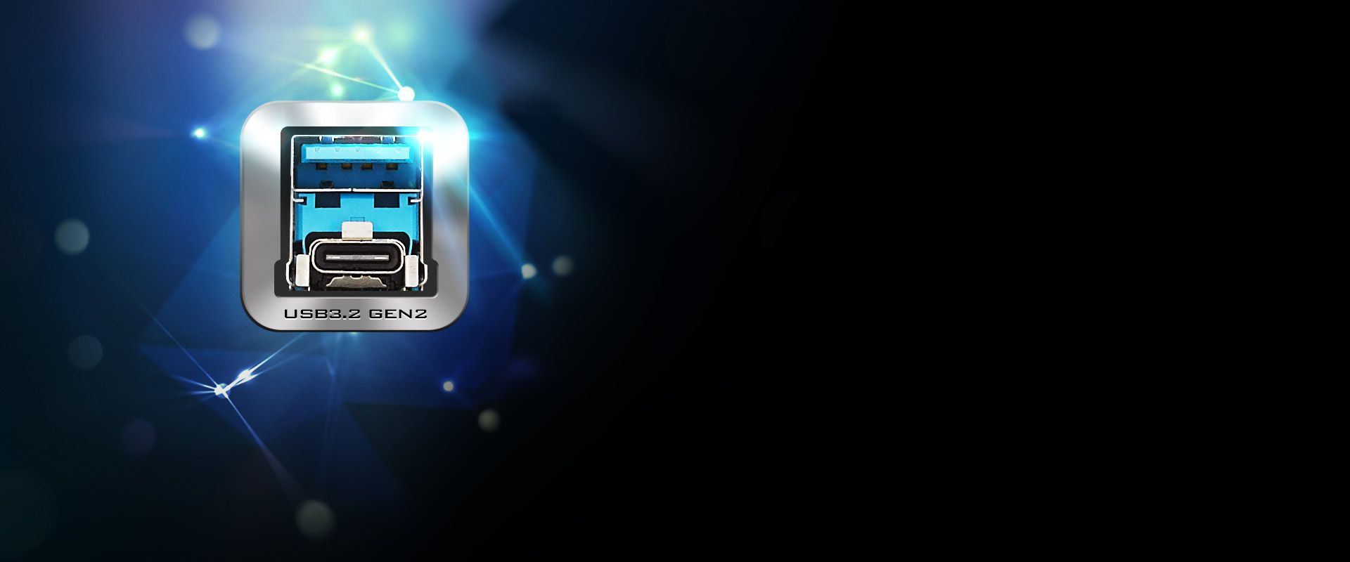 Ta płyta główna ma parę wbudowanych portów USB 3.2 Gen2 typu A i Type-C wbudowanych w tylne wejścia / wyjścia do obsługi urządzeń nowej generacji USB 3.2 Gen2 i do przesyłania danych z prędkością do 10 Gb / s.