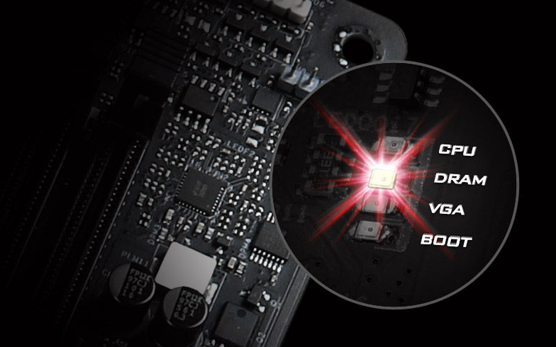 Łatwe w obsłudze narzędzie pokazujące operacje CPU / DRAM / VGA / BOOT przy włączaniu komputera. Wskaźnik Statusu Post jest łatwym i szybkim sposobem na zdiagnozowanie przyczyn problemów.