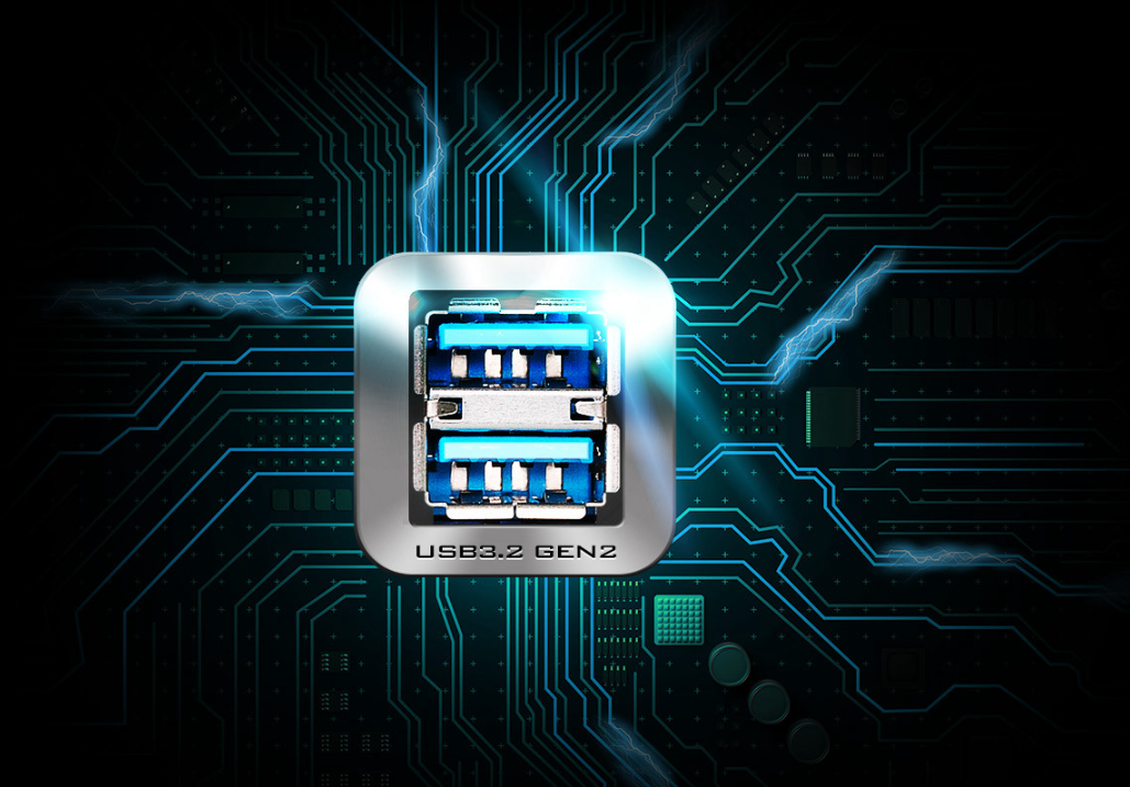 Ta płyta główna jest wyposażona w zintegrowane porty USB 3.2 Gen2 Typu-A oraz Typu-C na tylnym panelu WE/WY dla obsługi urządzeń USB 3.2 Gen2 nowej generacji z prędkością przesyłu danych aż do 10 Gbps.