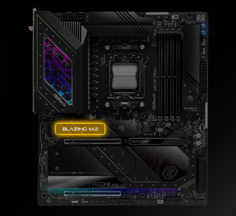 Flagowa płyta główna serii Taichi charakteryzuje się najwyższej klasy specyfikacją sprzętową, solidną konstrukcją zasilania, USB4 Typu-C i funkcjonalnością przyjazną dla majsterkowiczów. Została stworzona dla high-endowych graczy, oferując luksusową estetykę i wysoką wydajność. Taichi reprezentuje stan niezróżnicowanego absolutu i nieskończonego potencjału. Płyta główna sprosta każdemu zadaniu - ze stylem! Stań się jak woda. Bez kształtu, bez formy, uniwersalny w każdej sytuacji.