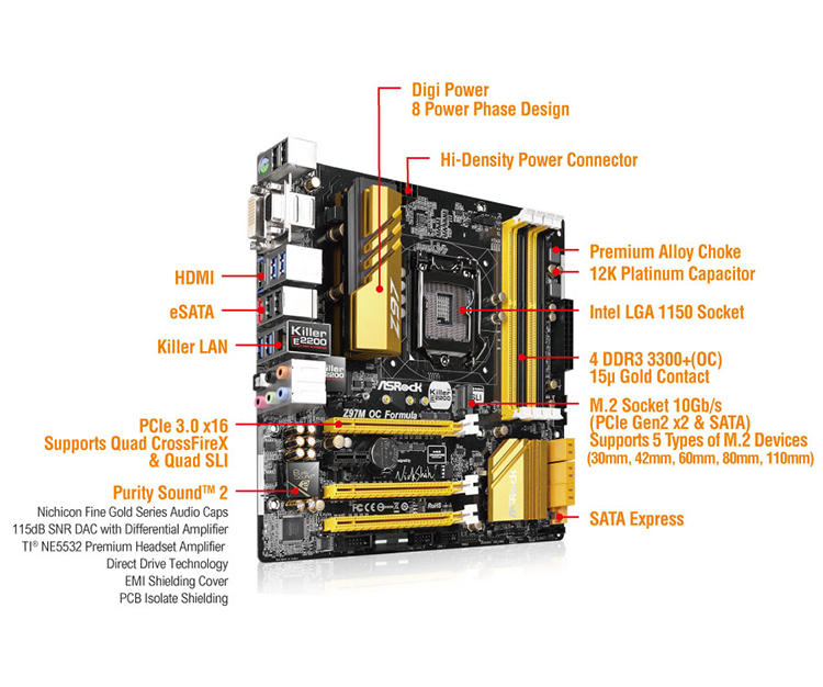 Płyta główna ASRock Z97M OC FORMULA, Z97, DualDDR3-1600, SATA3, RAID, HDMI, DVI, D-Sub, mATX (Z97M OC FORMULA)