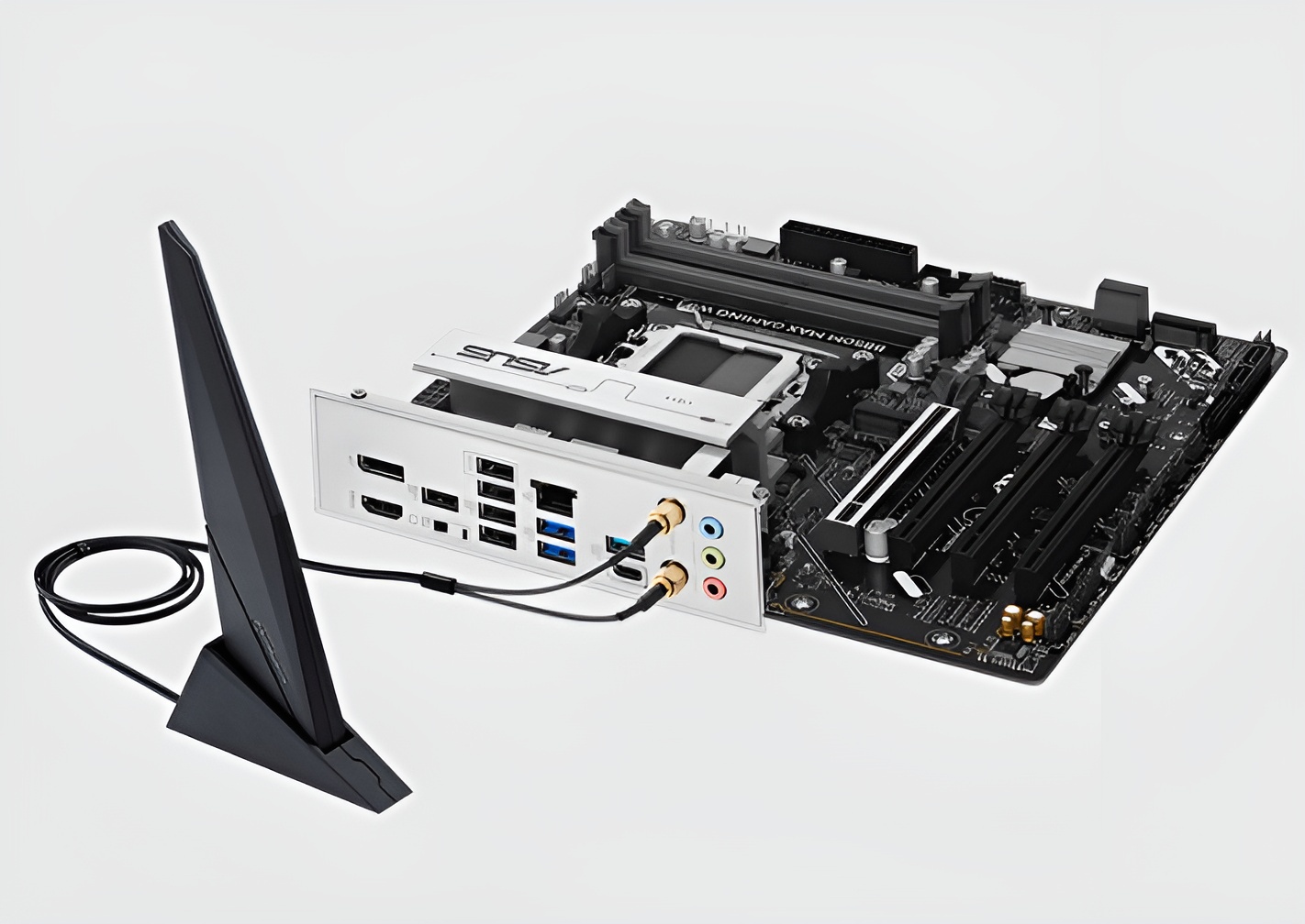 Dzięki zintegrowanemu modułowi Wi-Fi 6 (802.11ax) płyta główna ASUS B850M MAX GAMING WIFI oferuje szybką i stabilną łączność bezprzewodową. Standard Wi-Fi 6 zapewnia znacznie wyższe prędkości transferu danych i mniejsze opóźnienia w porównaniu do poprzednich generacji. Pozwala to na płynne granie w gry online i strumieniowanie treści w wysokiej rozdzielczości bez zakłóceń. W zestawie znajduje się również specjalna antena ASUS WiFi Q-Antenna, która ułatwia optymalne ustawienie sygnału.
