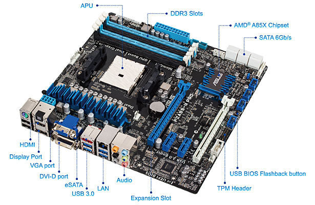 Ta płyta główna obsługuje układy hybrydowe z serii AMD® A z procesorem graficznym AMD Radeon™ z serii HD 7000. Ten rewolucyjny układ APU (jednostka przyspieszonego przetwarzania) łączy moc obliczeniową CPU z zaawansowaną obsługą grafiki DirectX 11 w jednej, niewielkiej i wydajnej energetycznie formie, umożliwiając szybszą pracę systemu oraz zapewniając świetne wrażenia wizualne. Wyposażony jest w obsługę dwukanałowych pamięci DDR3 i przyspiesza transfer danych do 5 GT/s.