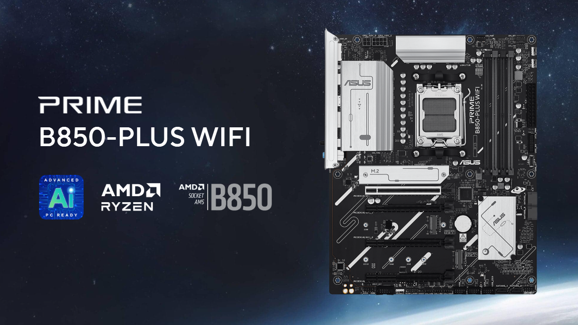 Płyty główne z serii ASUS Prime zostały zaprojektowane z myślą o pełnym wykorzystaniu potencjału procesorów AMD Ryzen™ serii 9000. Płyta główna PRIME B850-PLUS WIFI oferuje użytkownikom i entuzjastom składania komputerów szeroki zakres optymalizacji wydajności za pomocą intuicyjnego oprogramowania i funkcji firmware. Jest ona przystosowana do zaawansowanych komputerów AI (Advanced AI PC-ready), zapewniając moc i łączność niezbędną do wymagających zastosowań sztucznej inteligencji.