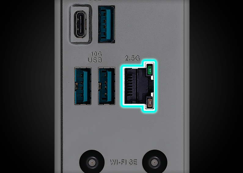 Karta sieciowa Realtek 2.5 Gb Ethernet zmniejsza obciążenie procesora i oferuje wyjątkowo wysoką przepustowość TCP i UDP, co przekłada się na szybsze i płynniejsze transfery danych.