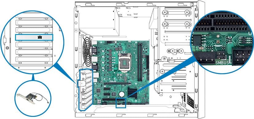 Wbudowane złącze SMBUS łączy się z kartą DASH LAN w celu zdalnego zarządzania infrastrukturą IT. DASH to sprzęt systemowy o architekturze desktopowej i mobilnej, który umożliwia zarządzanie płytą główną przez sieć.