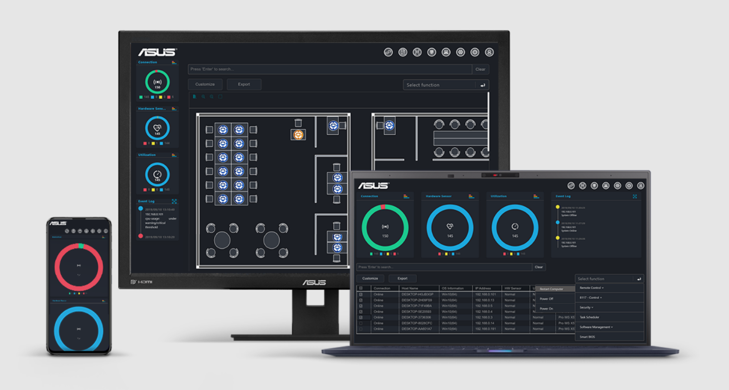 ASUS Control Center Express to narzędzie do monitorowania i zarządzania IT w czasie rzeczywistym, przeznaczone dla firm, które poprawia produktywność i zwiększa bezpieczeństwo, pomagając zapobiegać nieautoryzowanemu dostępowi i wyciekom danych. Intuicyjny pulpit nawigacyjny umożliwia łatwe zarządzanie sprzętem i oprogramowaniem w czasie rzeczywistym w całej organizacji. Zakup płyty głównej Pro uprawnia do otrzymania kopii Control Center Express za 60 USD.