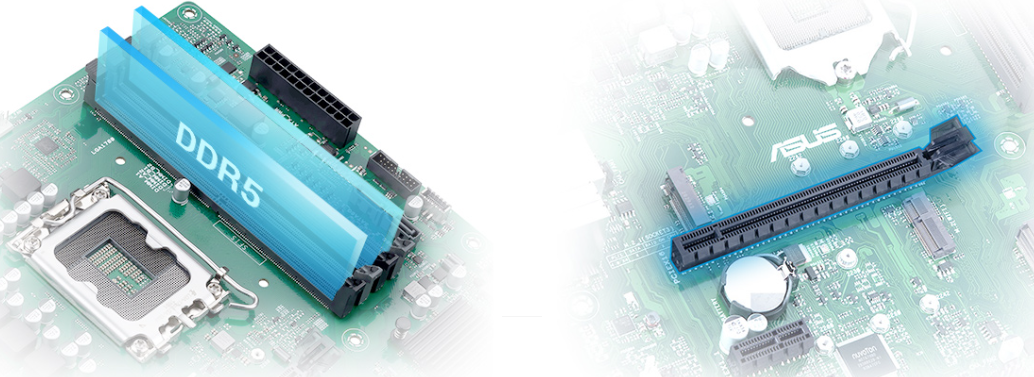 Ta biznesowa płyta główna to płyta główna kompatybilna z DDR5, która optymalizuje szybkość i stabilność modułów pamięci, zapewniając jednocześnie zaawansowaną architekturę dostarczania napięcia, zapewniającą większą efektywność energetyczną. Oferuje łączność PCIe® 4.0 dla urządzeń pamięci masowej i kart graficznych. Szeroka przepustowość i superszybkie prędkości transmisji umożliwiają tworzenie bogatych w funkcje kompilacji, które zapewniają optymalną wydajność wszędzie tam, gdzie jest to potrzebne.