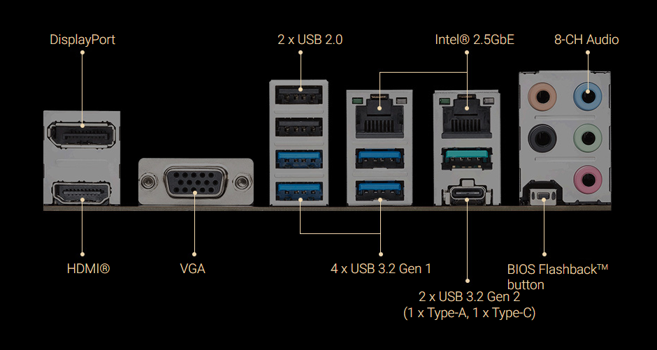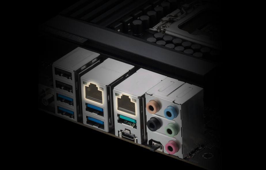 Zwiększona łączność dzięki podwójnym wbudowanym portom Ethernet. Intel 2.5G Ethernet ulepsza Twoje tradycyjne połączenie LAN, zapewniając do 2,5 razy większą przepustowość. Używając istniejącego kabla Ethernet, możesz cieszyć się szybszym transferem plików i natychmiastowym strumieniowaniem wideo w wysokiej rozdzielczości.