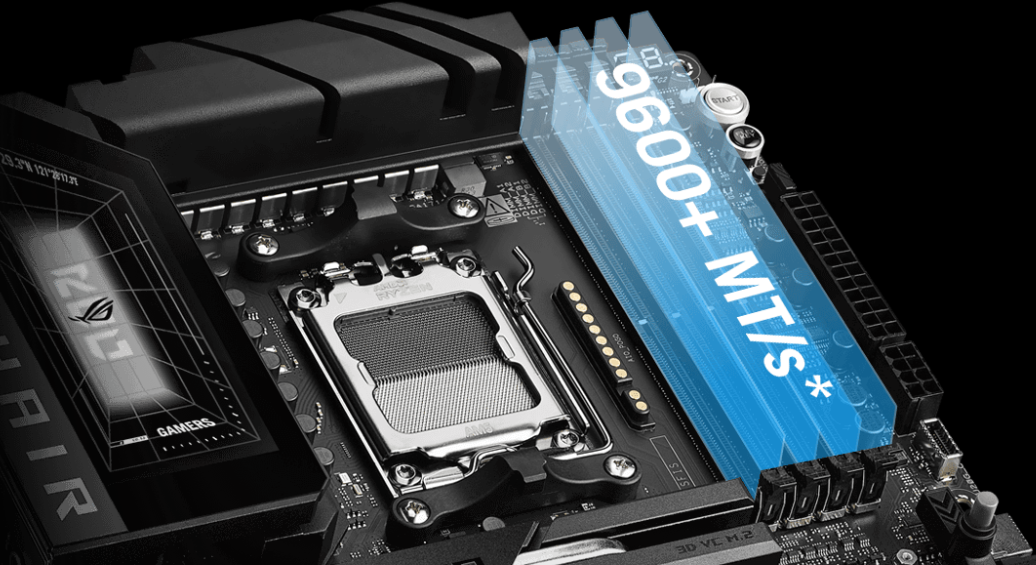 Płyta wspiera pamięci RAM DDR5 z technologią NitroPath DRAM, która poprawia ścieżki sygnałowe i pozwala na osiąganie znacznie wyższych częstotliwości pracy. Dzięki ulepszonemu projektowi slotów, moduły pamięci mogą pracować stabilniej przy wyższym taktowaniu, co przekłada się na lepszą wydajność w grach i aplikacjach profesjonalnych. Dodatkowo technologia AEMP (ASUS Enhanced Memory Profile) pozwala na optymalizację pracy pamięci nawet w przypadku modułów z ograniczeniami PMIC. Użytkownik otrzymuje kompletny zestaw narzędzi do precyzyjnego dostrojenia pamięci operacyjnej.