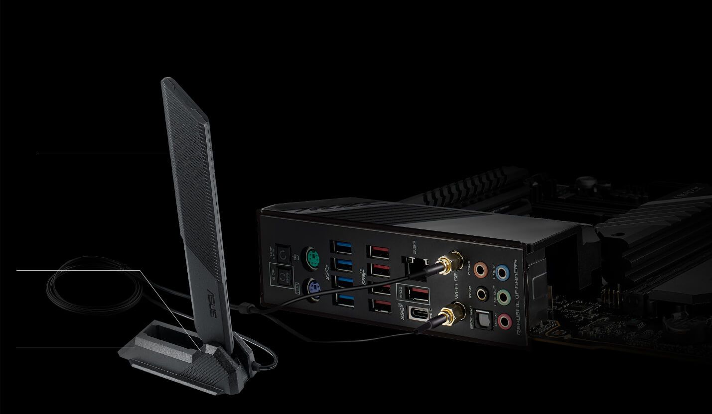 Zintegrowana technologia Wi-Fi 6E wykorzystuje od niedawna dostępne spektrum radiowe pasma 6 GHz. Zapewnia to nawet trzy razy większą przepustowość niż pasmo 5 GHz i maksymalnie siedem pasm 160 MHz dla zagwarantowania ultraszybkich połączeń bezprzewodowych, większej liczby urządzeń połączonych z siecią, a także lepszej wydajności w miejscach o dużym natężeniu połączeń bezprzewodowych.