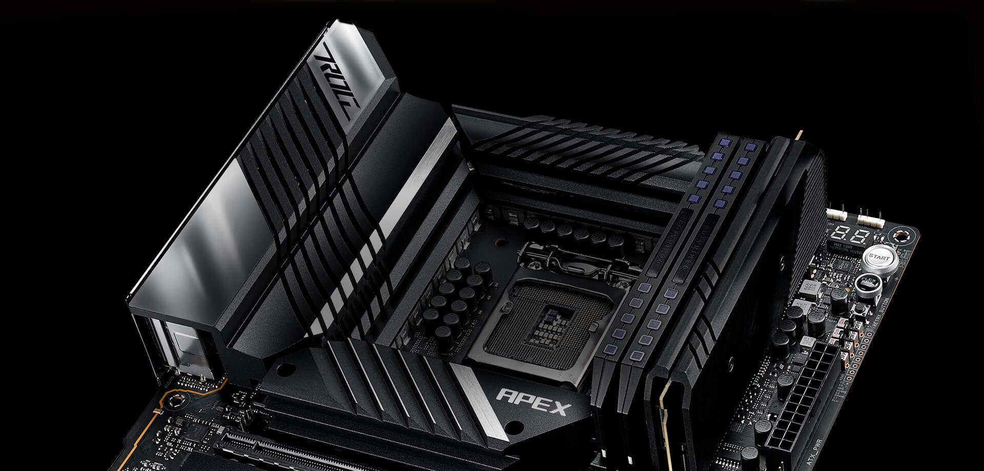 W każdej kolejnej generacji płyt głównych z serii ROG Apex udoskonalano układ komponentów pod kątem zmniejszenia opóźnień systemowych i zwiększenia przepustowości, dzięki czemu zdominowały one listy rekordów świata w wielu kategoriach. Maximus XIII Apex kontynuuje tę tradycję, oferując ulepszone zasilanie i dodatkowe udoskonalenia w zakresie overclockingu procesorów Intel Core 11. generacji. Wraz z tymi udoskonaleniami płyta główna zapewnia również najnowsze opcje połączeń, zwiększając możliwości i udostępniając najwyższą wydajność użytkownikom składającym systemy do codziennego użytku.
