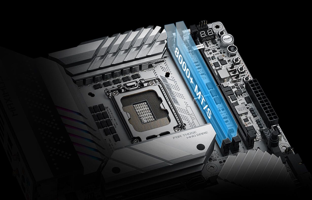 ROG ma długą tradycję w zwiększaniu wydajności pamięci, a pamięć DDR5 nie jest odstająca. Dzięki ulepszonemu routingowi sygnału zestawy klasy entuzjastów osiągają teraz prędkość 8 GT/s na Maximus Z790 Apex, a kto wie, jak daleko mogą się posunąć przyszłe moduły DIMM? Doświadczeni weterani mogą sprawdzić swoje umiejętności, majstrując przy szerokiej gamie opcji tuningu w UEFI.